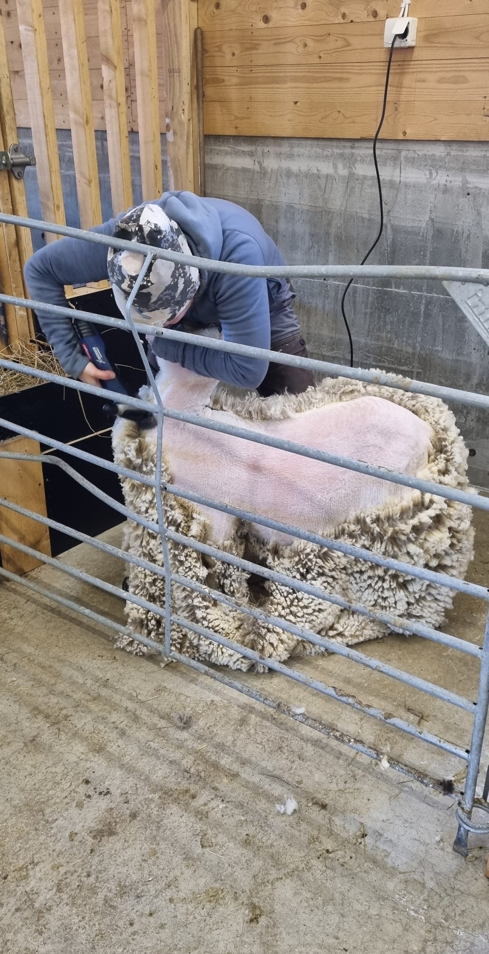 För att få fram en slutprodukt så hjälps Adeline och jag åt. Adeline klipper fåren och lammen och jag sorterar den klippta ullen från skräp och ull som är smutsig för att få en hög kvalitet. Sen sorteras ullen efter färg.